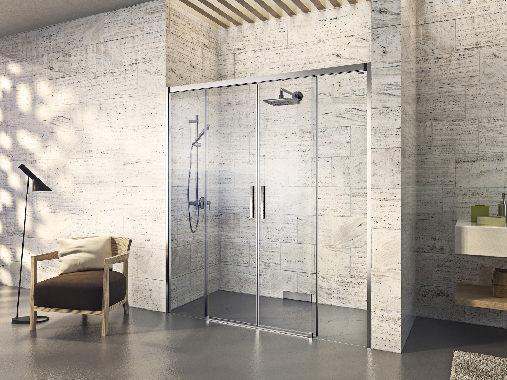 • Duschrückwände mit Fliesen aus Feinsteinzeug